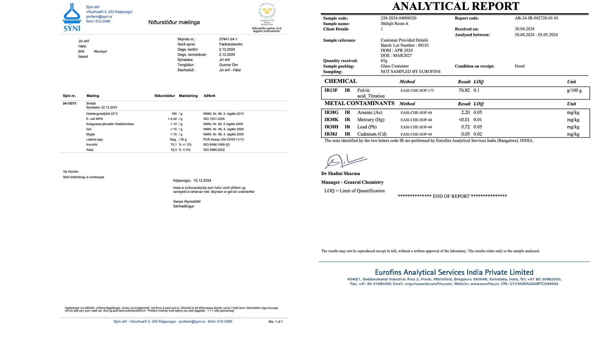 Jiri Premium Shilajit er ríkt af steinefnum, fúlvínsýru og öðrum lífrænum efnasam-